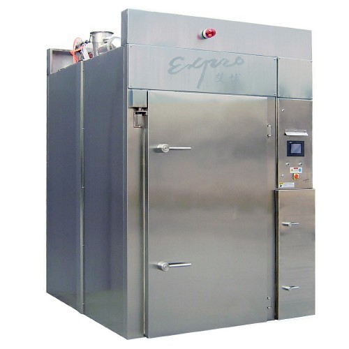 BYXX-II 烟熏箱是蒸汽加热的(也可采用电加热结构),具有干燥、蒸煮、烟熏等功能。根据要求还可加装喷淋、冷烟熏或糖熏装置。该机有温、湿度、时间控制, 还有普通电气元件或PLC控制、单门或双门两种配置可供选择。