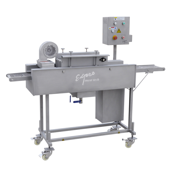 整机由优质不锈钢SUS304制造。BSJJ-200T上浆机适用于浓浆的裹涂。裹浆的厚度可以调整,不锈钢网带输送采用机械无级调速,特别适用于不规则、短厚产品的裹浆加工。本机特别适用于小批量、多品种产品的生产及大厂研发室新产品的试制。