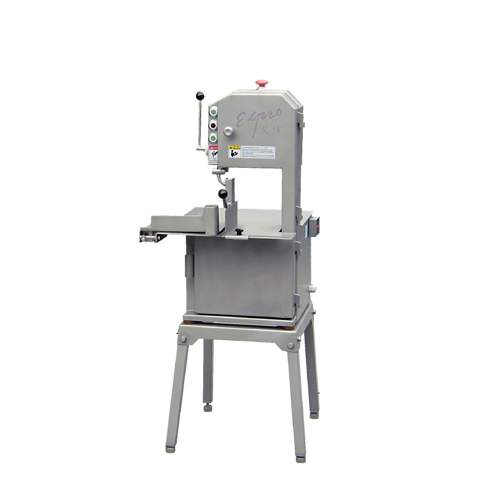 BDJ-200A带锯用于冷冻和带骨肉类的锯割,低噪音,低肉耗。工作台面装有安全推进板,整机装有安全装置,采用欧洲进口锯条。
