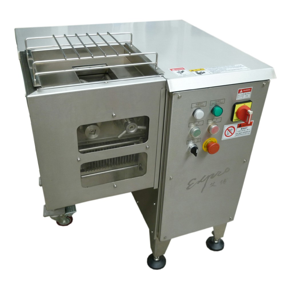 整机由优质不锈钢SUS304.BQSJ-I 切片切丝机是将修整后的肉块切成肉片和肉丝的专用加工设备。切片时肉温应在2~-2℃左右,以保证切片切丝质量。该机是通过更换刀片之间的垫圈厚度来调整所切肉片的厚度,用安装上下两组刀轴来达到切丝目的。