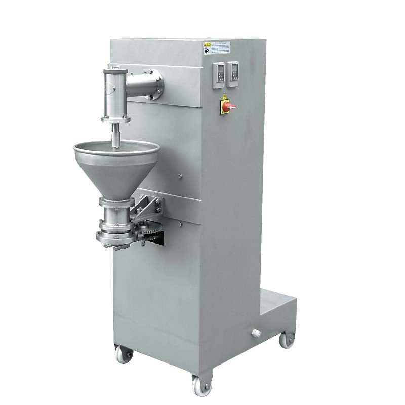 型 号 : BRWJ-500 电 压 : 380V-50Hz三相 功 率 : 2.25 kW生产能力 : 300 Kg/hr出丸口径 : φ24, φ32, φ38 mm调速范围 : 搅拌速度 : 0 ~ 940 rpm成型速度 : 0 ~ 1390 rpm重 量 : 222Kg