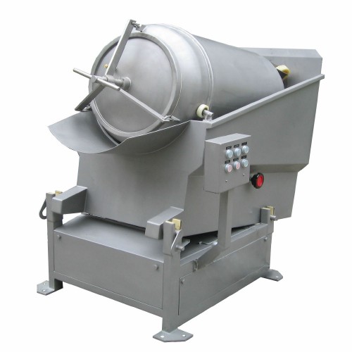 整机由优质不锈钢SUS304制造。BVRJ-350真空滚揉机是在真空状态下将肉块进行滚揉(按摩),起到肉质嫩化,充分吸收盐水,使蛋白质充分溶解的作用。该机采用机械无级调速和液压翻转装置,考虑了装料、工作、卸料的需要和方便,设置了必要的状态功能。配套的滚揉桶可以分离,还具有可选择的浆叶结构,以满足不同原料肉及产品出品率的加工要求。